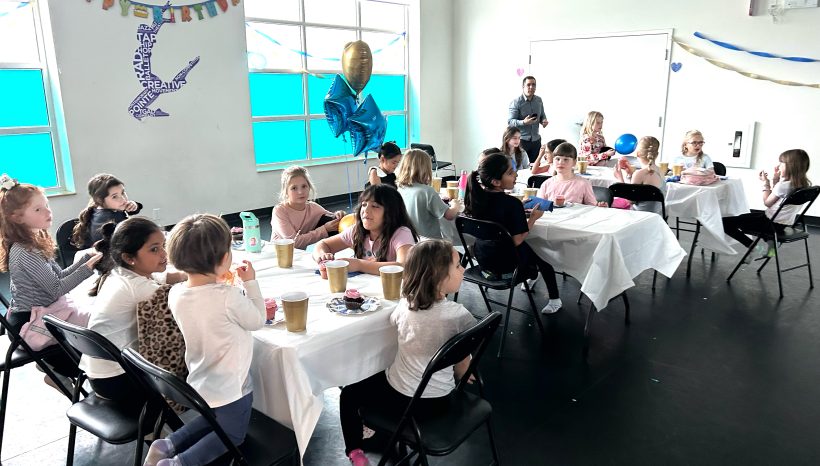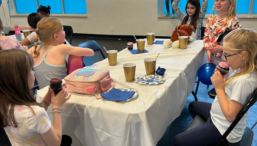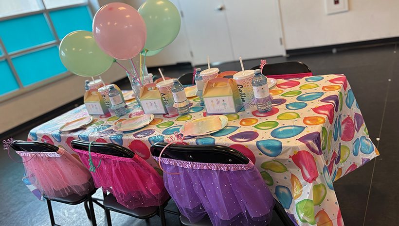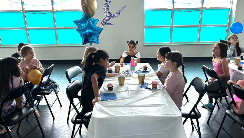 Our faculty will help welcome the party guests into the studio and guide them on where to put their belongings (purple change room). They will keep everyone in the reception area until all party attendees have arrived. Once everyone is here, they will escort the group to the yellow studio for the dance portion of the party.