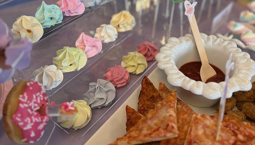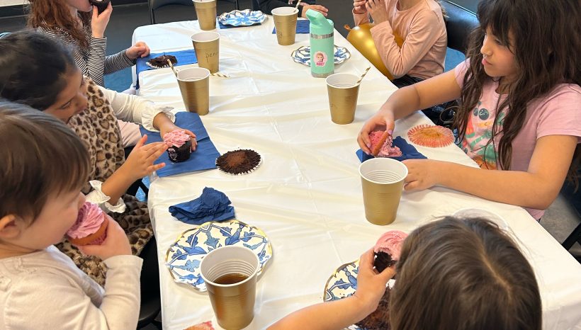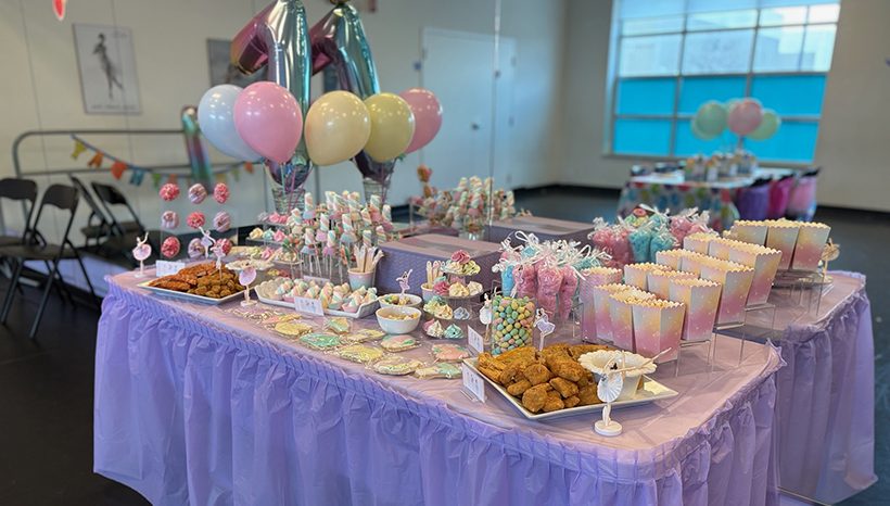 You’re welcome to come and start decorating and organizing a half hour before the party begins. We will help you set up in the purple room just off the reception area, with tables and chairs arranged for snacks, food, and cake. There will also be a display table at the front of the room for your goodies, juice boxes, cake, cupcakes, or whatever you wish to bring.